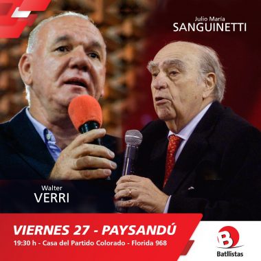 El expresidente Julio María Sanguinetti concurrirá a Paysandú el vienes 27 de julio para dar...